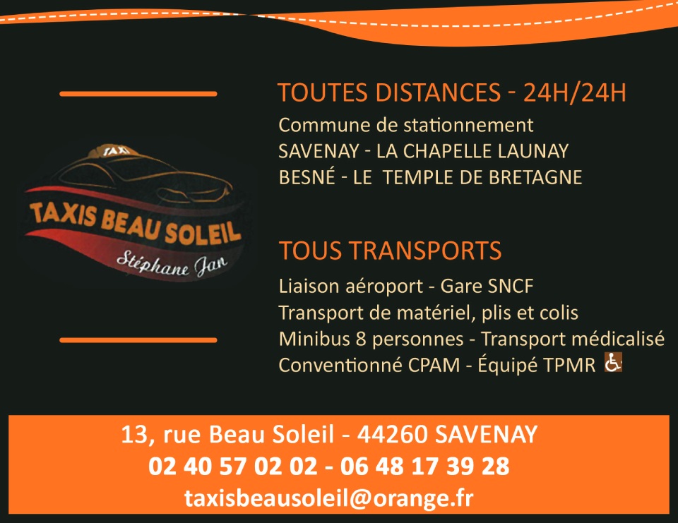 Créée en 2014, notre entreprise dispose de sept licences taxi à Savenay, Besné, Le Temple de Bretagne, la Chapelle Launay.